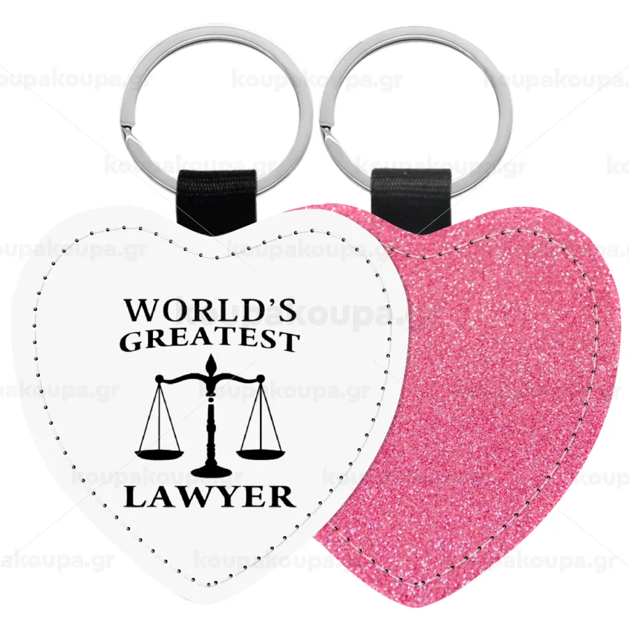 World's greatest Lawyer, Μπρελόκ PU δερμάτινο glitter καρδιά ΡΟΖ