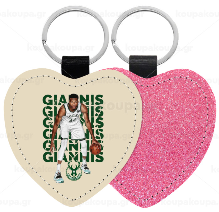 Giannis Antetokounmpo, Μπρελόκ PU δερμάτινο glitter καρδιά ΡΟΖ