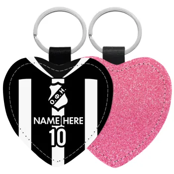 ΟΦΗ εμφάνιση, Μπρελόκ PU δερμάτινο glitter καρδιά ΡΟΖ