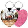 Basketball, Μπρελόκ PU δερμάτινο glitter καρδιά ΡΟΖ