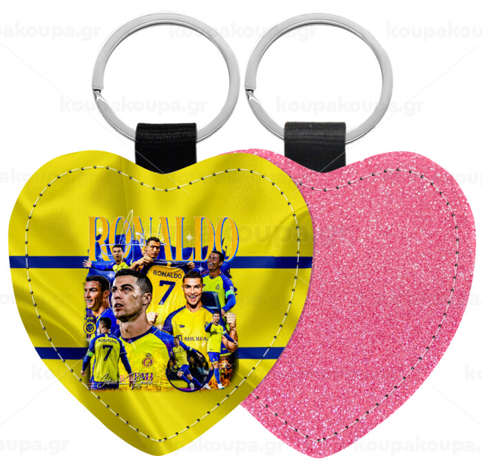 Cristiano Ronaldo Al Nassr, Μπρελόκ PU δερμάτινο glitter καρδιά ΡΟΖ