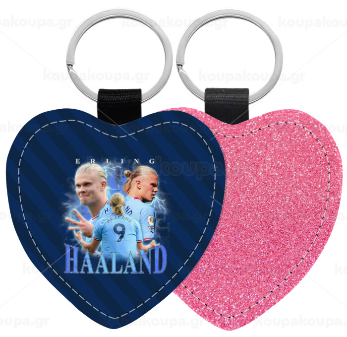Erling Haaland, Μπρελόκ PU δερμάτινο glitter καρδιά ΡΟΖ