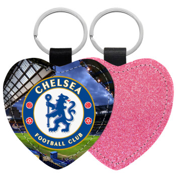 FC Chelsea, Μπρελόκ PU δερμάτινο glitter καρδιά ΡΟΖ