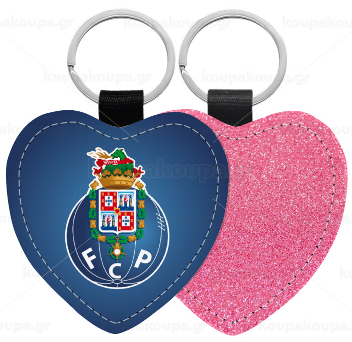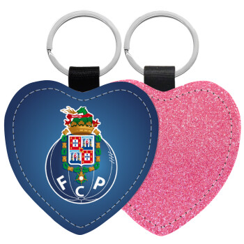 FCP, Μπρελόκ PU δερμάτινο glitter καρδιά ΡΟΖ