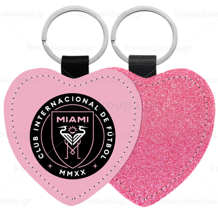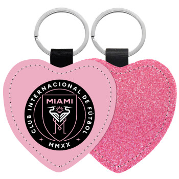 Inter Miami CF, Μπρελόκ PU δερμάτινο glitter καρδιά ΡΟΖ