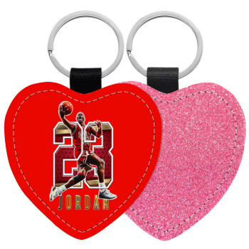 Jordan 23, Μπρελόκ PU δερμάτινο glitter καρδιά ΡΟΖ