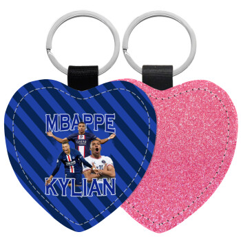 Kylian Mbappé, Μπρελόκ PU δερμάτινο glitter καρδιά ΡΟΖ