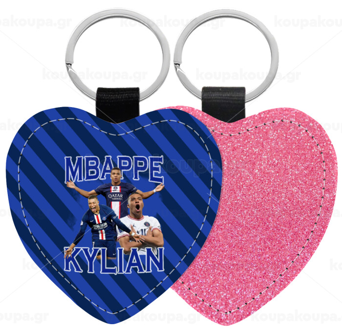 Kylian Mbappé, Μπρελόκ PU δερμάτινο glitter καρδιά ΡΟΖ