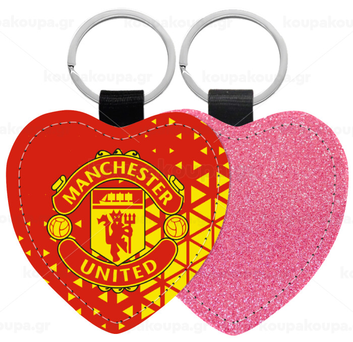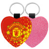 Manchester United F.C., Μπρελόκ PU δερμάτινο glitter καρδιά ΡΟΖ