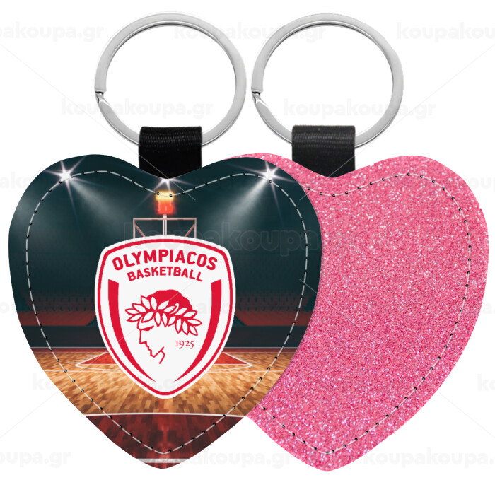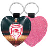 Olympiacos B.C., Μπρελόκ PU δερμάτινο glitter καρδιά ΡΟΖ