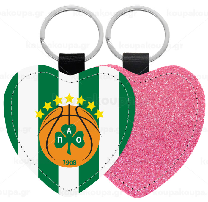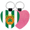 PAO BC, Μπρελόκ PU δερμάτινο glitter καρδιά ΡΟΖ
