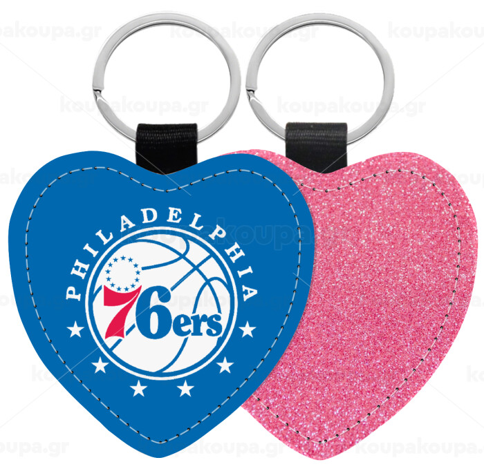 Philadelphia 76ers, Μπρελόκ PU δερμάτινο glitter καρδιά ΡΟΖ