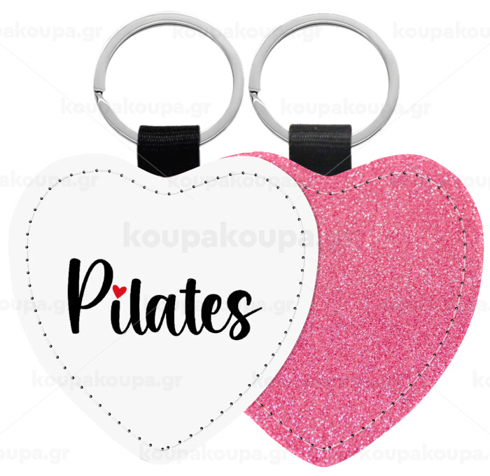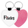 Pilates love, Μπρελόκ PU δερμάτινο glitter καρδιά ΡΟΖ