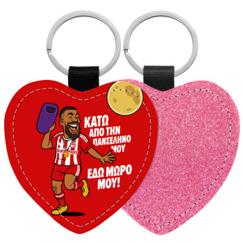 Ροντινέι, "ΚΑΤΩ ΑΠΟ ΤΗΝ ΠΑΝΣΕΛΗΝΟ ΜΟΥ!", Μπρελόκ PU δερμάτινο glitter καρδιά ΡΟΖ