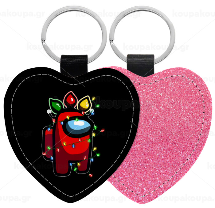 Among US xmas lights, Μπρελόκ PU δερμάτινο glitter καρδιά ΡΟΖ