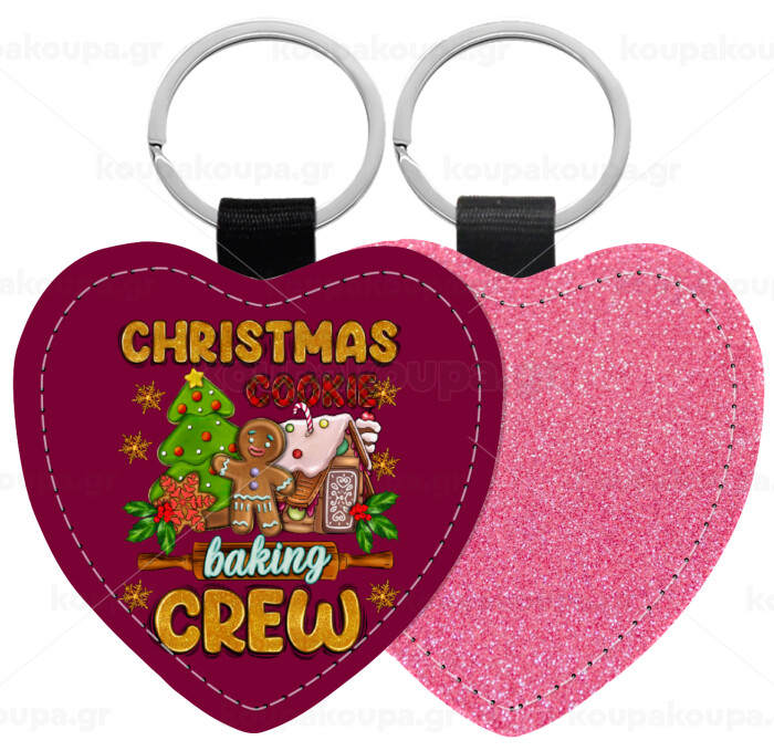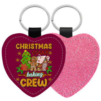 Christmas Cookie Baking Crew, Μπρελόκ PU δερμάτινο glitter καρδιά ΡΟΖ