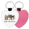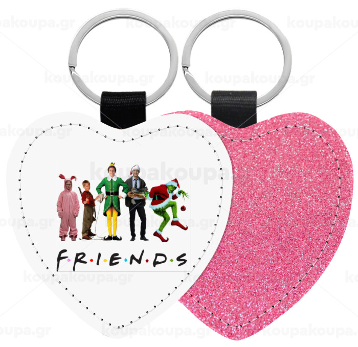 Christmas FRIENDS, Μπρελόκ PU δερμάτινο glitter καρδιά ΡΟΖ