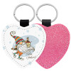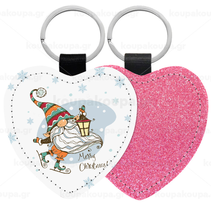 Christmas nordic gnomes, Μπρελόκ PU δερμάτινο glitter καρδιά ΡΟΖ