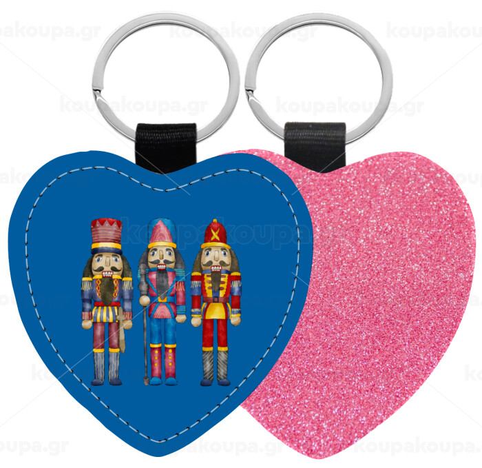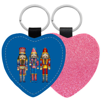 Christmas Nutcrackers, Μπρελόκ PU δερμάτινο glitter καρδιά ΡΟΖ