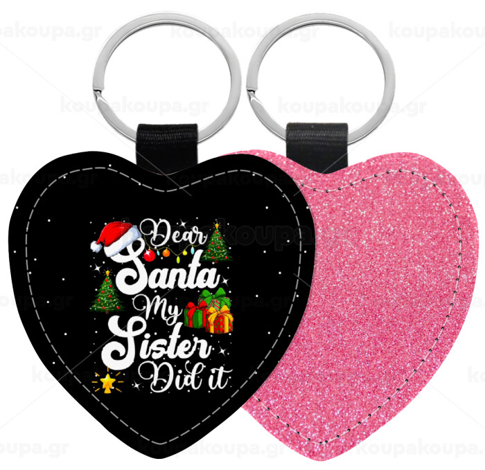 Dear santa my Sister Did it, Μπρελόκ PU δερμάτινο glitter καρδιά ΡΟΖ
