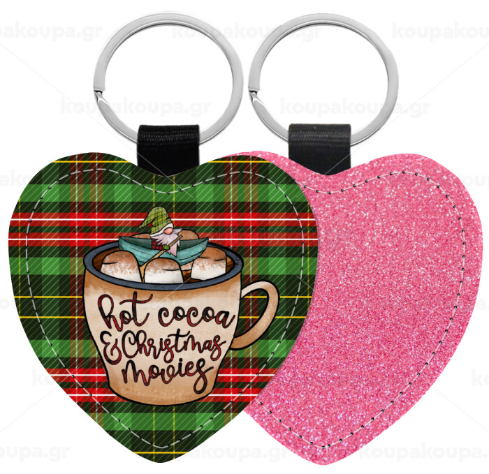Hot Cocoa And Christmas Movies, Μπρελόκ PU δερμάτινο glitter καρδιά ΡΟΖ