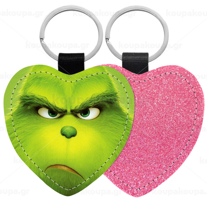 mr grinch, Μπρελόκ PU δερμάτινο glitter καρδιά ΡΟΖ