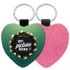 Leatherette keychain with glitter on one side and high resistance leatherette on the other. Safety ring for the keys.