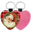 Santa Claus, Μπρελόκ PU δερμάτινο glitter καρδιά ΡΟΖ