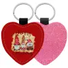 Xmas Elves, Μπρελόκ PU δερμάτινο glitter καρδιά ΡΟΖ
