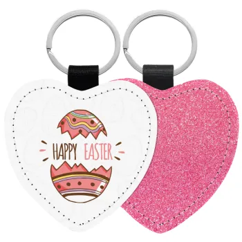 Happy easter egg, Μπρελόκ PU δερμάτινο glitter καρδιά ΡΟΖ