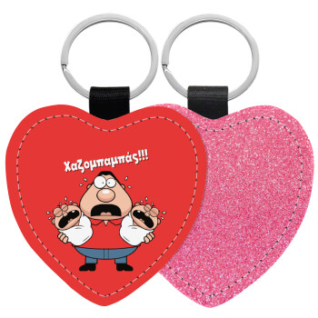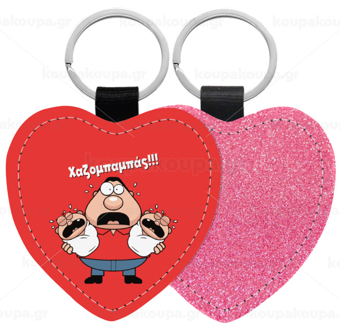 Χαζομπαμπάς σε απόγνωση, Μπρελόκ PU δερμάτινο glitter καρδιά ΡΟΖ