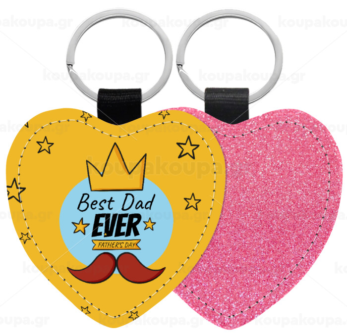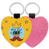 King, Best dad ever, Μπρελόκ PU δερμάτινο glitter καρδιά ΡΟΖ