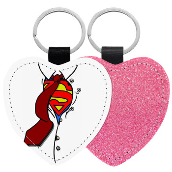 SuperDad, Μπρελόκ PU δερμάτινο glitter καρδιά ΡΟΖ