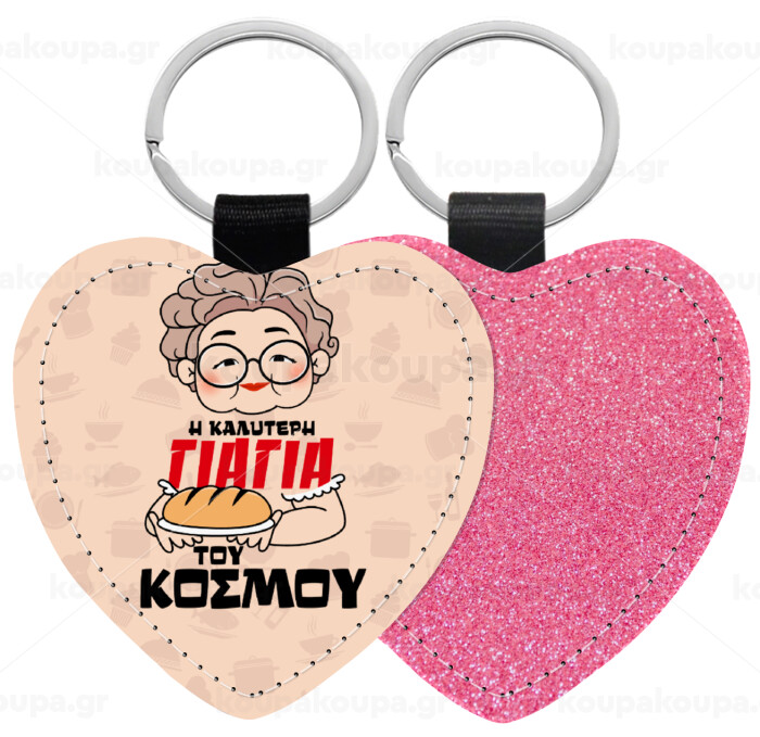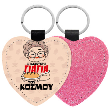 Η καλύτερη γιαγιά του κόσμου!, Μπρελόκ PU δερμάτινο glitter καρδιά ΡΟΖ
