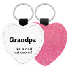 Grandpa, like a dad, just cooler, Μπρελόκ PU δερμάτινο glitter καρδιά ΡΟΖ
