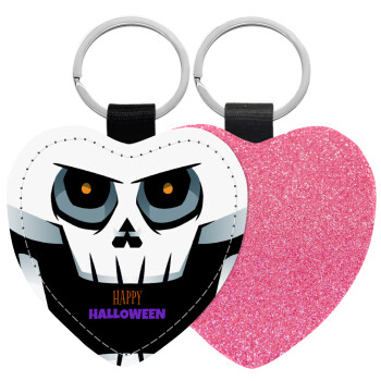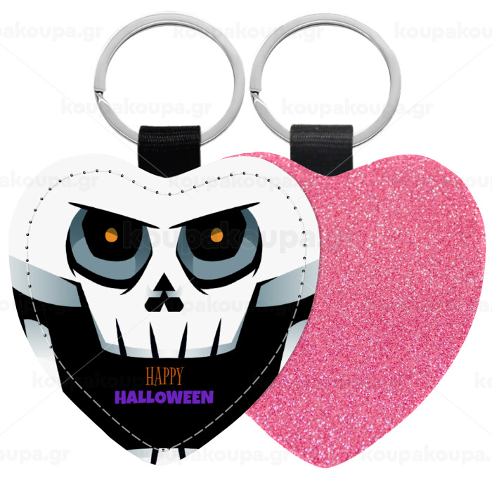 Halloween trick or treat Skeleton, Μπρελόκ PU δερμάτινο glitter καρδιά ΡΟΖ