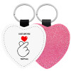 I just love you, that's all., Μπρελόκ PU δερμάτινο glitter καρδιά ΡΟΖ