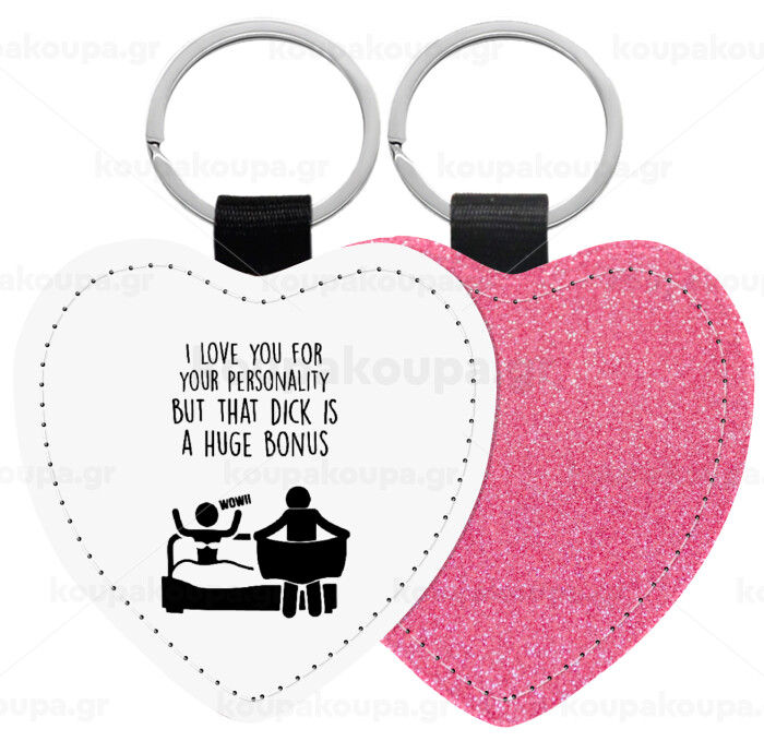 I Love You for Your Personality But that D... Is a Huge Bonus , Μπρελόκ PU δερμάτινο glitter καρδιά ΡΟΖ