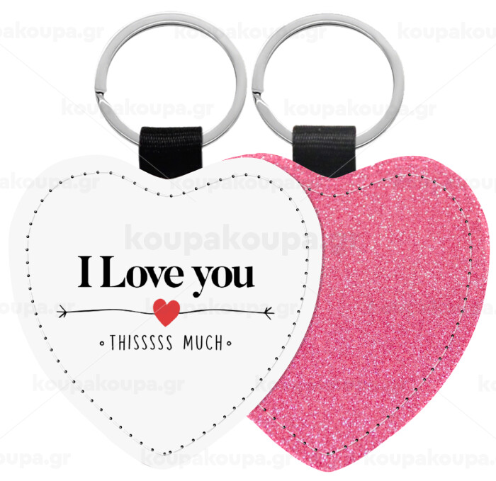 I Love you thisssss much, Μπρελόκ PU δερμάτινο glitter καρδιά ΡΟΖ