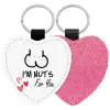 I'm Nuts for you, Μπρελόκ PU δερμάτινο glitter καρδιά ΡΟΖ