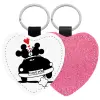 Love Car, Μπρελόκ PU δερμάτινο glitter καρδιά ΡΟΖ