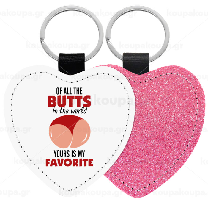 Of all the Butts in the world, your's is my favorite, Μπρελόκ PU δερμάτινο glitter καρδιά ΡΟΖ