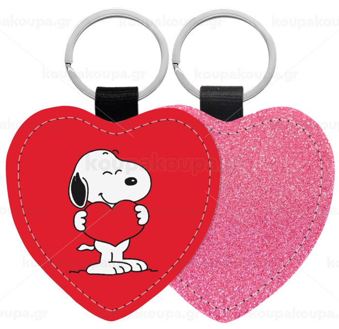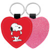 Snoopy takemy heart, Μπρελόκ PU δερμάτινο glitter καρδιά ΡΟΖ