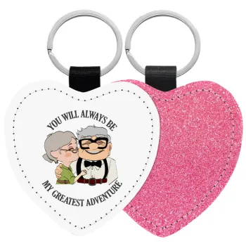 UP, YOU WILL ALWAYS BE MY GREATEST ADVENTURE, Μπρελόκ PU δερμάτινο glitter καρδιά ΡΟΖ