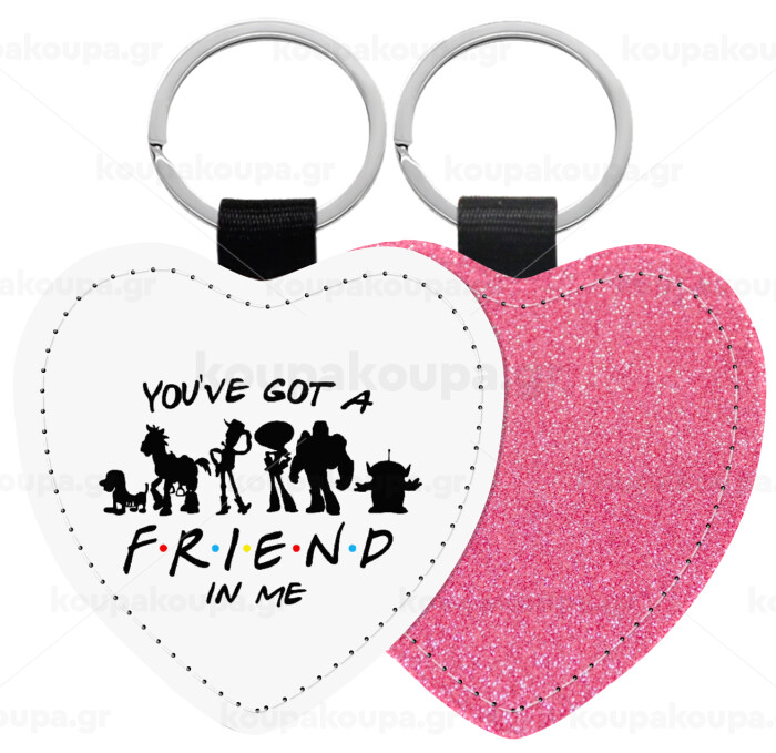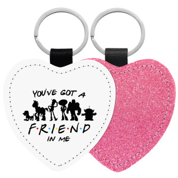 You've Got a Friend in Me, Μπρελόκ PU δερμάτινο glitter καρδιά ΡΟΖ