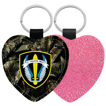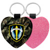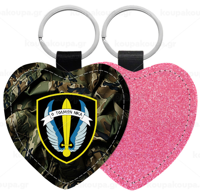 Έμβλημα Μονάδων Καταδρομών Ο Τολμων Νικα - Λοκ, Μπρελόκ PU δερμάτινο glitter καρδιά ΡΟΖ