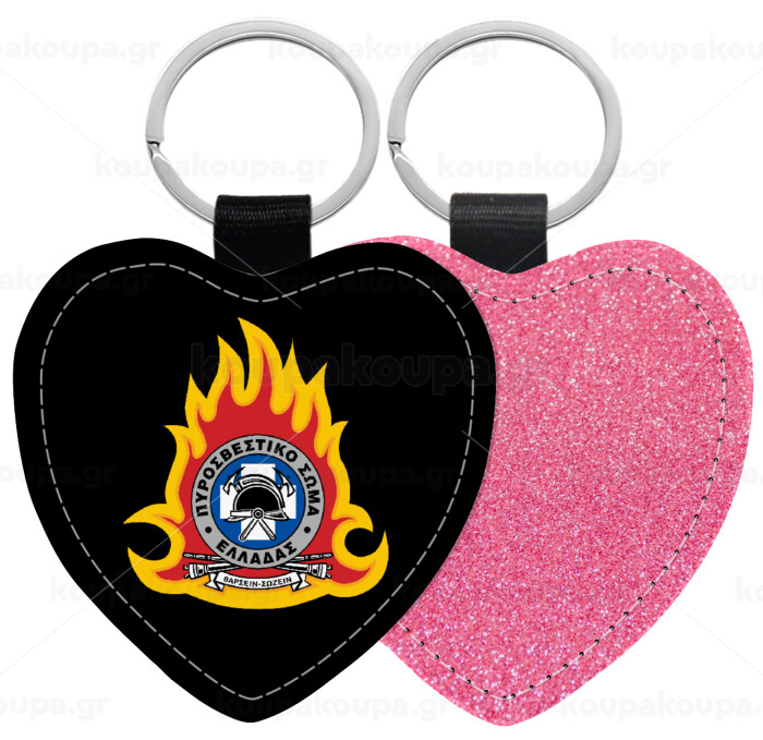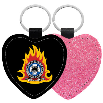 Πυροσβεστικό σώμα Ελλάδος σκούρο, Μπρελόκ PU δερμάτινο glitter καρδιά ΡΟΖ