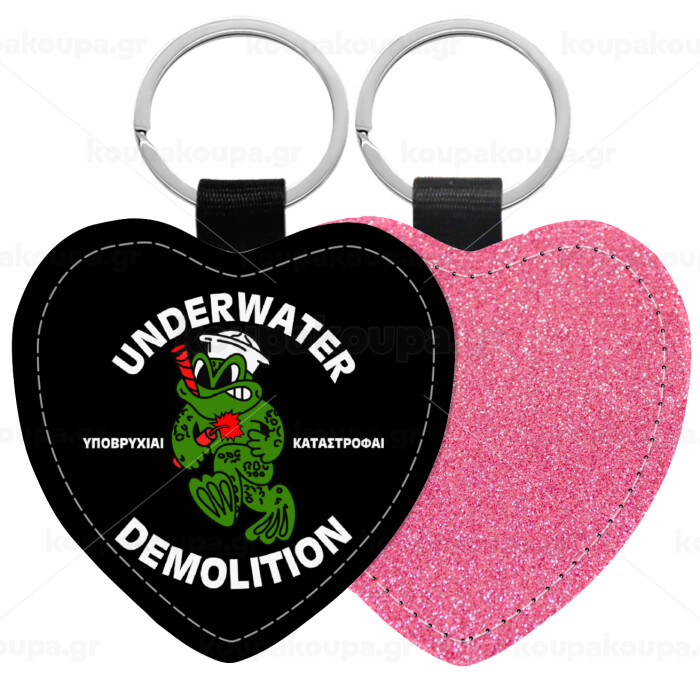 Underwater Demolition, Μπρελόκ PU δερμάτινο glitter καρδιά ΡΟΖ