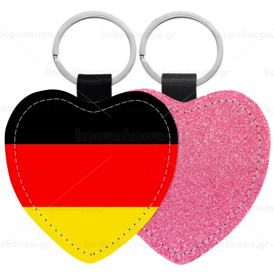 Germany flag, Μπρελόκ PU δερμάτινο glitter καρδιά ΡΟΖ