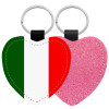 Italy flag, Μπρελόκ PU δερμάτινο glitter καρδιά ΡΟΖ